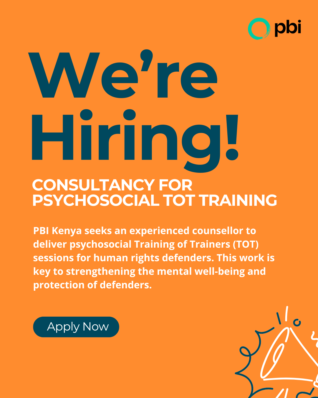PBI Kenya seeks an experienced counsellor to deliver psychosocial Training of Trainers (TOT) sessions for human rights defenders. This work is key to strengthening the mental well-being and protection of defenders.